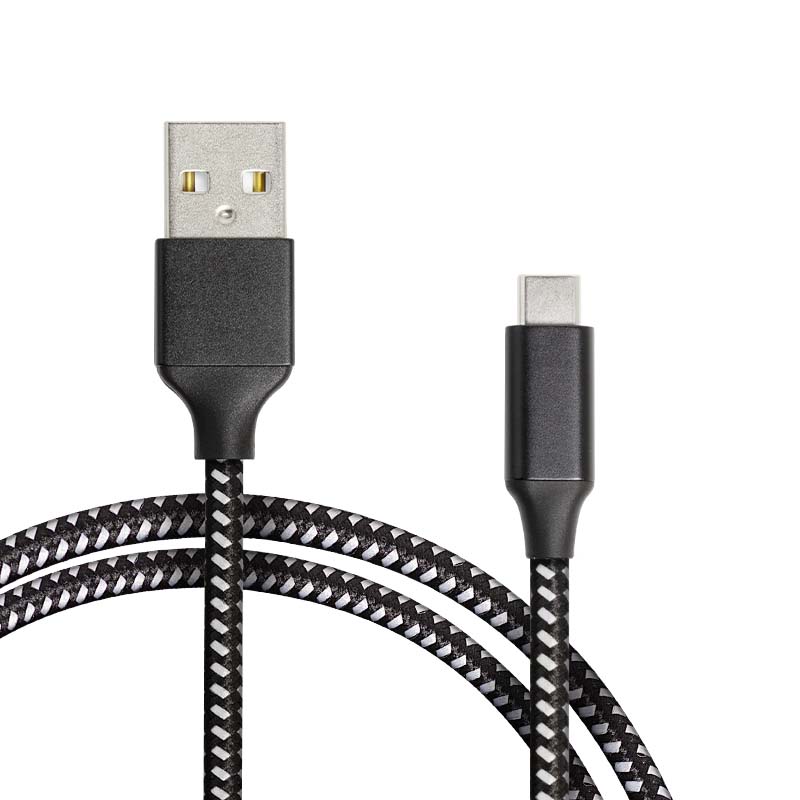Das 1 Meter lange Kabel, mit schwarzen Anschlüssen, ist mit schwarz-weißem Nylon veredelt, wodurch es robust und knotenfrei überzeugt.